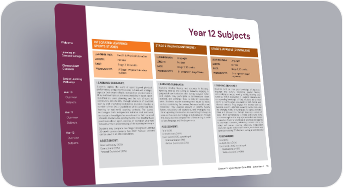 2026 Gleeson College Senior Years Curriculum Guide 2026 Page 58 Page 60