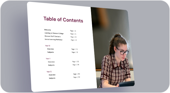 2026 Gleeson College Senior Years Curriculum Guide 2026 Page 3 Page 5