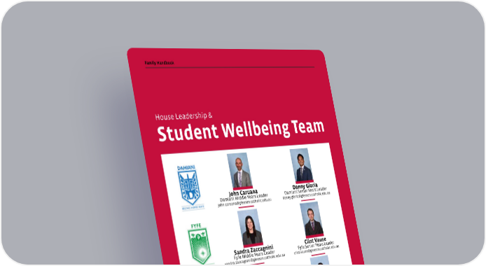 John Caruana Damiani Middle Years Leader [email protected] Danny Gloria Damiani Senior Years Leader [email protected] Sandra Zaccagnini Fyfe Middle Years Leader [email protected] Clint Vause Fyfe Senior Years Leader [email protected] Darryle Phillips Hughes Middle Years Leader [email protected] Naomi Creek Hughes Senior Years Leader [email protected] Sarah Campbell McDonald Middle Years Leader [email protected] Lisa Feleppa McDonald Senior Years Leader [email protected] 22 | gleeson.sa.edu.au Family Handbook Student Wellbeing Team House Leadership &