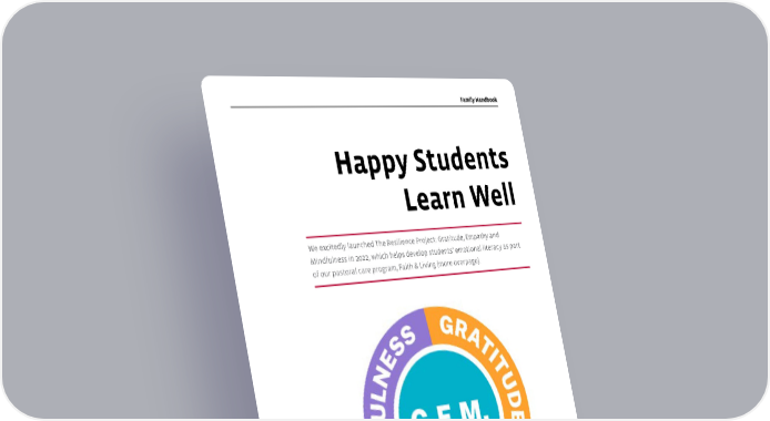 gleeson.sa.edu.au | 49 Family Handbook Happy Students Learn Well We excitedly launched The Resilience Project: Gratitude, Empathy and Mindfulness in 2022, which helps develop students’ emotional literacy as part of our pastoral care program, Faith & Living (more overpage).