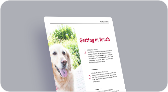 gleeson.sa.edu.au | 43 Family Handbook 1 2 3 CARE GROUP TEACHER Your child’s Care Group teacher is your and your child’s first point of contact with the College for all things of a general nature. They will be able to answer your query or forward it to the appropriate staff member. If the query relates to a specific subject, then that subject teacher is the best contact person. HOUSE or LEARNING AREA LEADER Where matters are unable to be resolved by your child’s Care Group or Subject teacher, a House Leader (page 23) or Learning Area Leader (page 38) will assist as appropriate. ASSISTANT and/or DEPUTY PRINCIPAL Where matters require further escalation, the relevant Assistant Principal, and/or Deputy Principal, will be involved. Getting in Touch