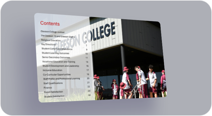 Gleeson College School Performance Report – 2024 Page 1 Page 3
